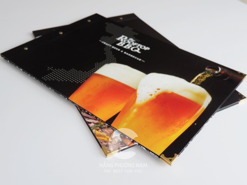 Công đoạn hoàn thiện menu này cũng không khác xa so với các loại menu khác : đều có thể dùng cách đóng gáy, bắt vít ráp còng, gắn lò xo, hoặc làm dấu gáy,…