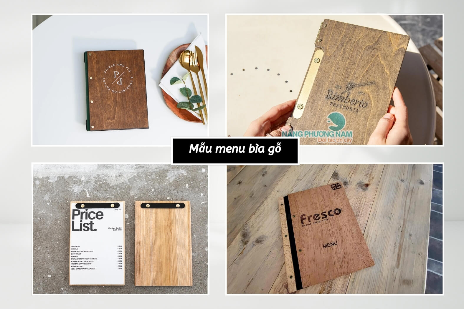 Mẫu menu bìa gỗ đẹp, chất lượng