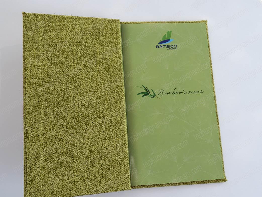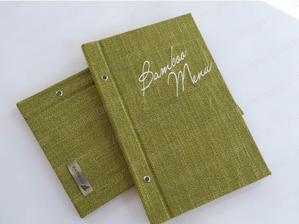 2.Mẫu menu nhà hàng bìa vải màu xanh lũy tre ( Bamboo menu)