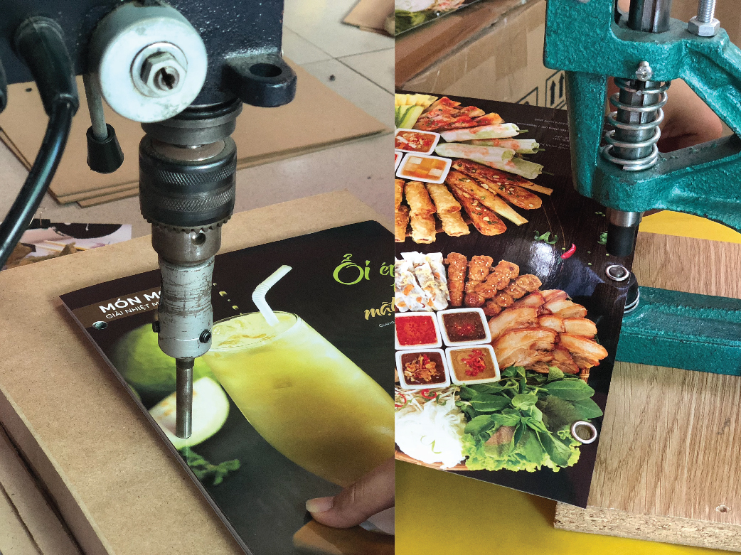 Quy trình hoàn thiện menu bìa bồi gỗ cho hệ thống nhà hàng của Chảo Đỏ: