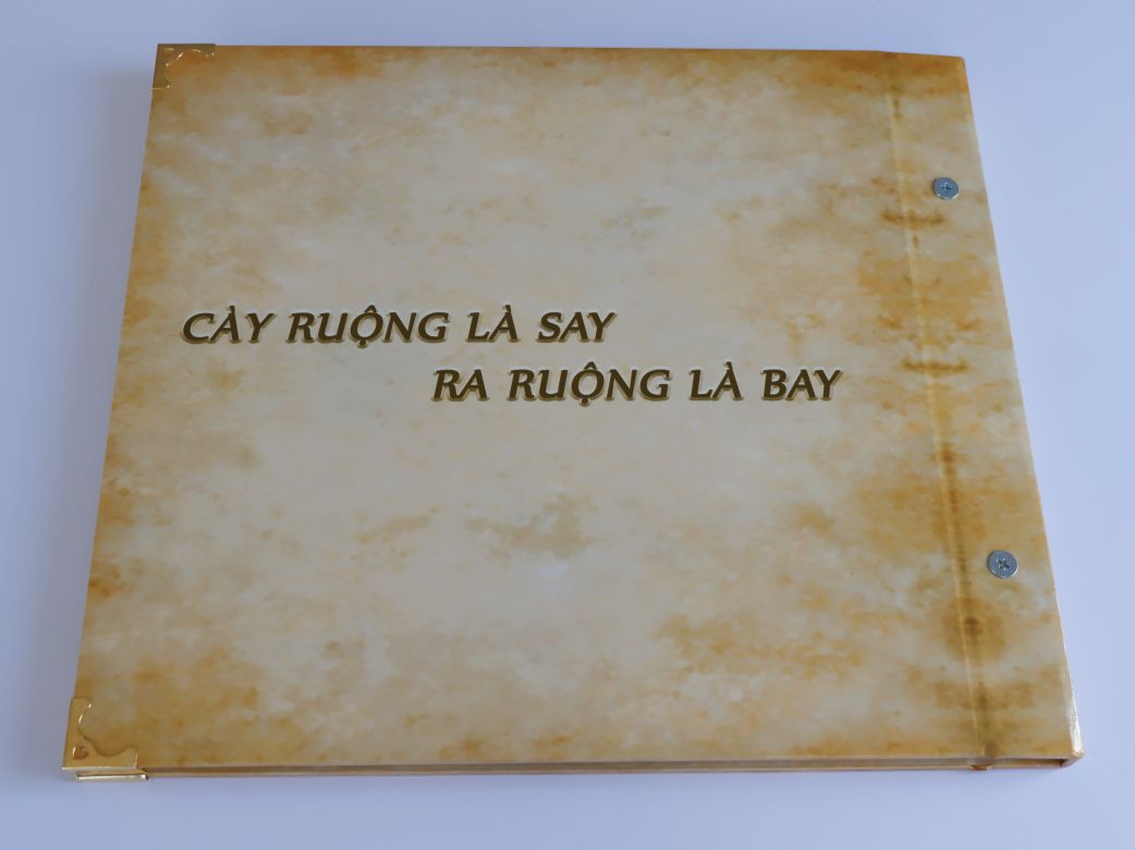 Nhìn qua menu thấy câu: ‘cày ruộng là say, ra ruộng là bay’ cảm thấy đầy hào hứng và tò mò. Không biết ở cuốn menu bìa bồi gỗ này có gì đặc biệt và cảm giác chỉ muốn khám phá ngay lập tức.