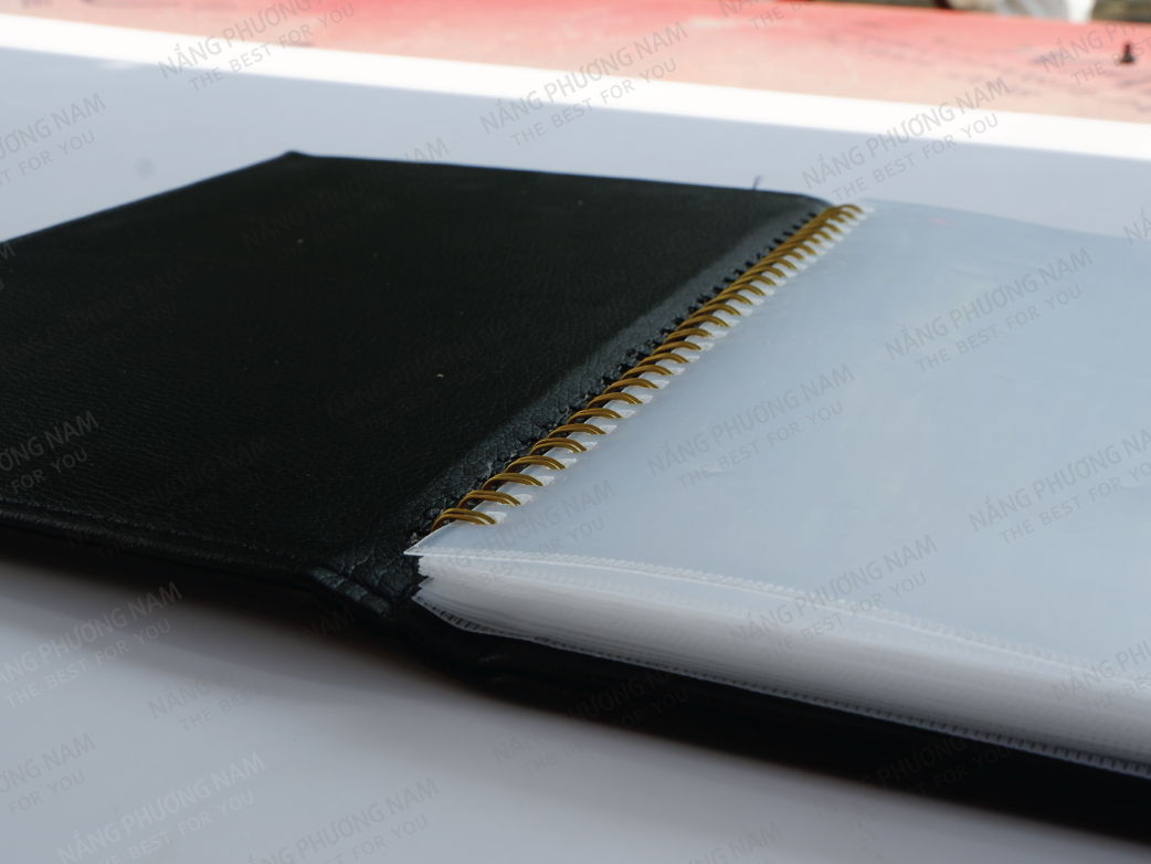 Bìa: được làm từ loại da PU cao cấp màu xanh, được nhà Nắng gia công và may tỉ mỉ cẩn thận từng đường nét
