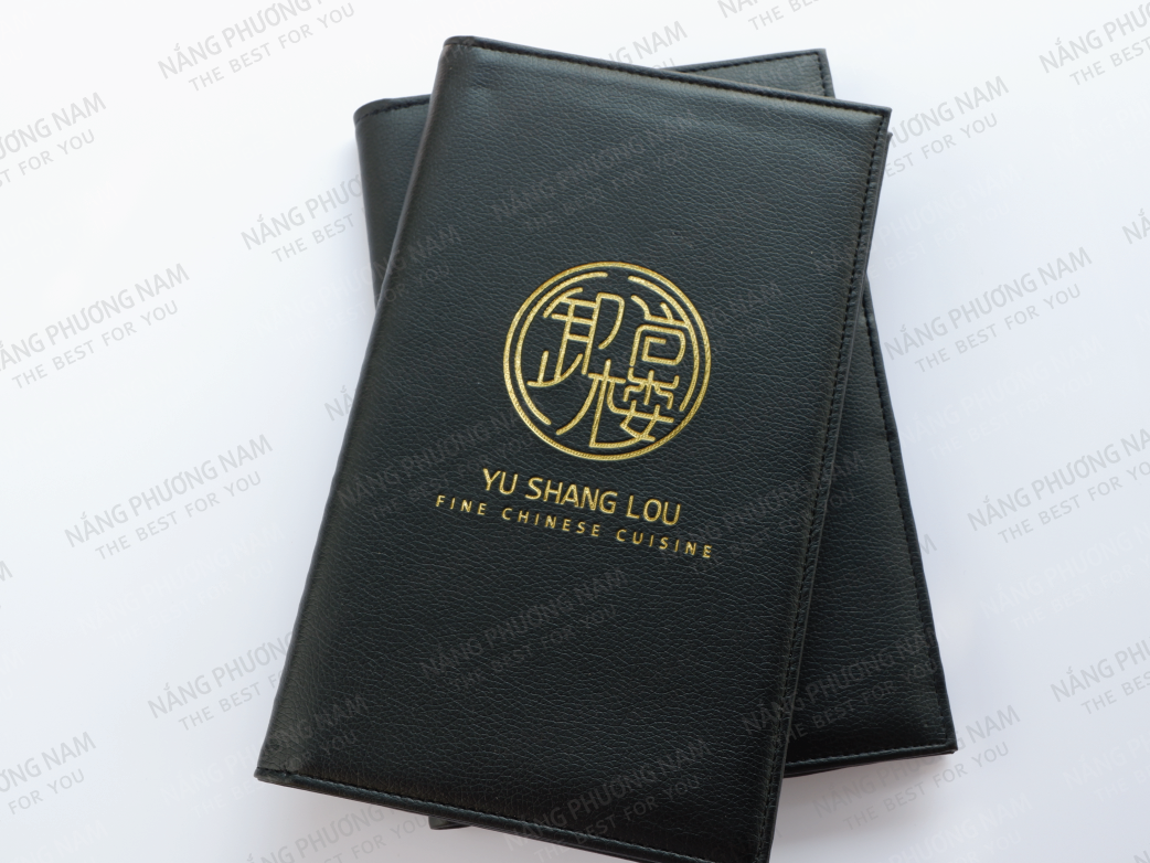 Menu bìa da màu đen cho nhà hàng Yu Shang Lou- một màu của sự quyền lực và huyền bí nhưng lại rất sang trọng.