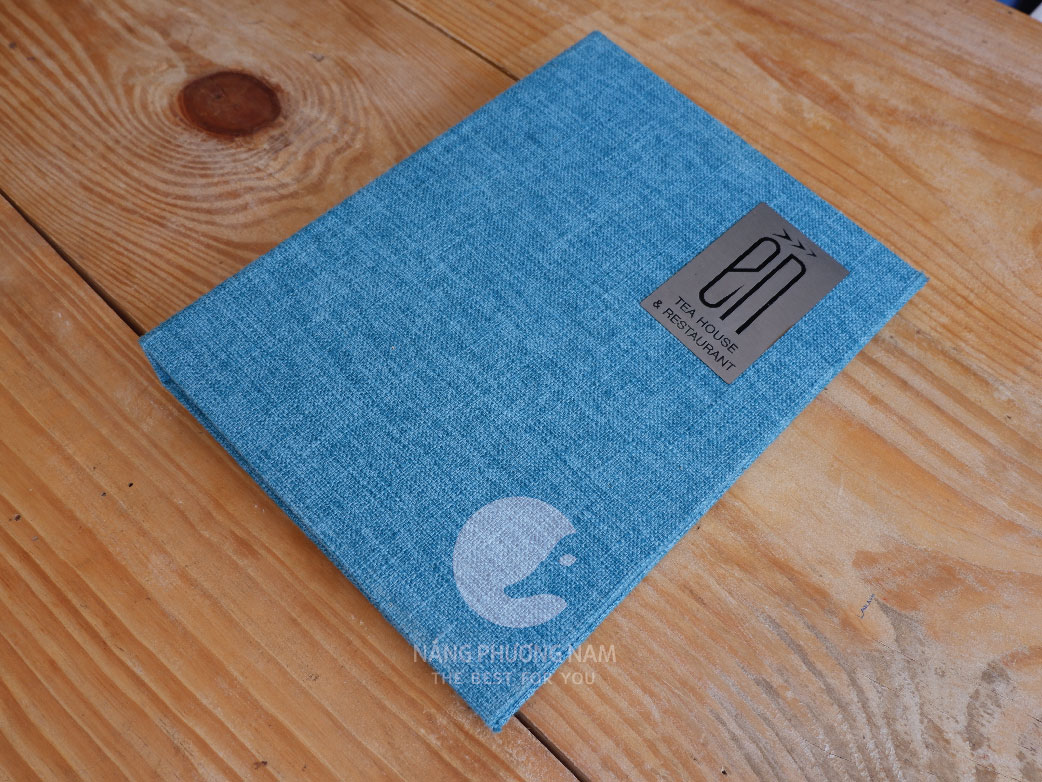 Đối với loại menu bìa vải linen này có chút nhược điểm là sẽ không in được trên bìa nên các hình ảnh mà bạn muốn thể hiện trên bìa sẽ không như những sản phẩm khác. Cũng chính vì vậy logo sẽ làm theo dạng inox ăn mòn sau đó gắn lên. Như vậy vẫn vừa đẹp vừa sang lại bền nữa và cũng không làm mất đi vẻ đẹp tự nhiên của vải bố linen.