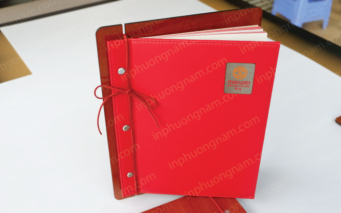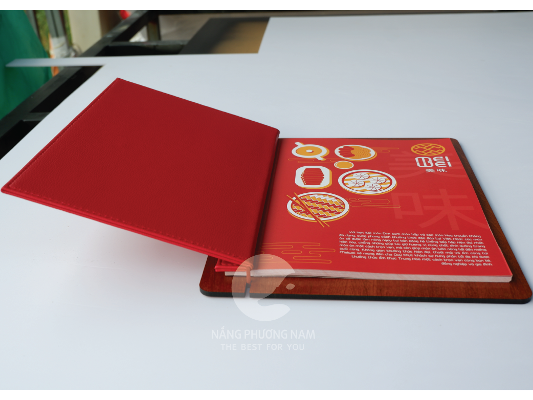 Menu nhà hàng Meiwei- Mẫu menu nhà hàng đẹp với thiết kế là sự kết hợp độc đáo giữa gỗ và da cao cấp