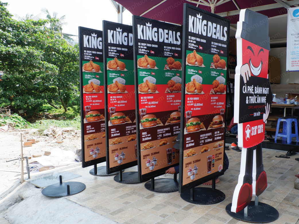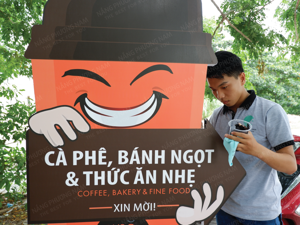 3.Chưa kể đến dịch vụ trang trí quảng cáo ngoài trời như làm bảng hiệu quảng cáo, làm hộp đèn, in decal, làm những tờ phướn,…,nhà Nắng cũng hoàn tất từ A-Z luôn: in ấn, lắp đặt và hoàn tất tận nơi. Việc làm trang trí quảng cáo ngoài trời không giống như quảng cáo trên internet, là mặc dù chỉ ở một chỗ không di chuyển khắp nơi được nhưng bù lại thì loại hình này có thể tiếp cận những người đang đi đường, những người chưa sử dụng internet, và đặc biệt là không giới hạn độ tuổi. Không chỉ vậy, loại hình quảng cáo này luôn luôn khiến người qua lại nhìn thấy và dần dần hình thành thói quen là khiến cho những ai đã nhìn thấy nhiều lần thì ghi nhớ hình ảnh ấy trong đầu, từ đó suy nghĩ sẽ sử dụng dịch vụ hay sản phẩm của bạn cũng sẽ cao hơn.