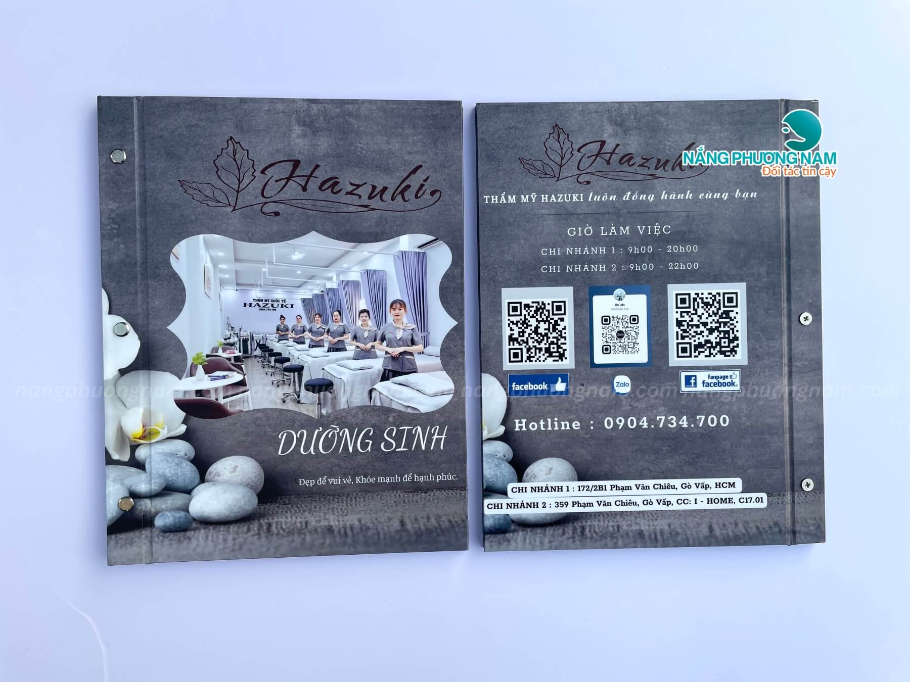 Thực tế, một cuốn menu spa đẹp không chỉ là nơi liệt kê dịch vụ – mà còn là “gương mặt thương hiệu” giúp khách hàng cảm nhận được sự chuyên nghiệp, sự chỉn chu ngay từ giây phút đầu tiên. Menu được thiết kế khoa học, chuẩn màu, chất liệu sang trọng sẽ khiến khách tin tưởng hơn, dễ lựa chọn dịch vụ, và tăng khả năng khách mua thêm liệu trình.