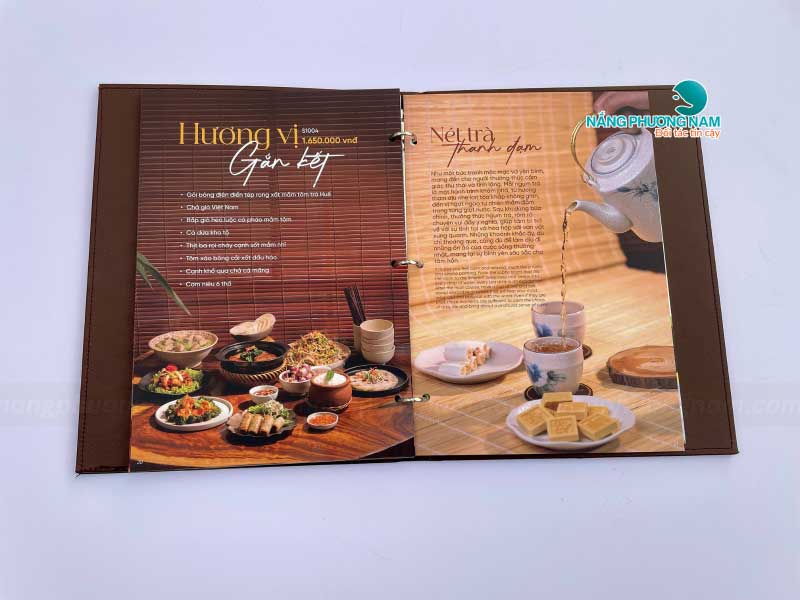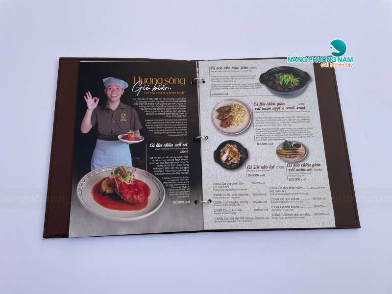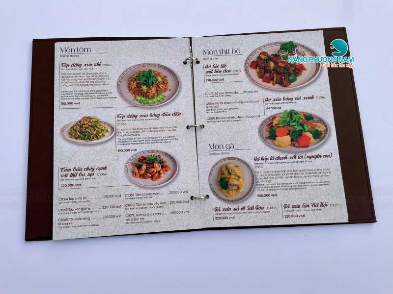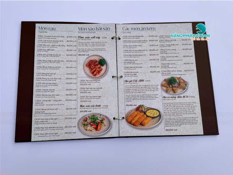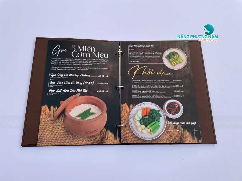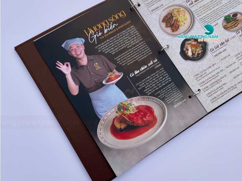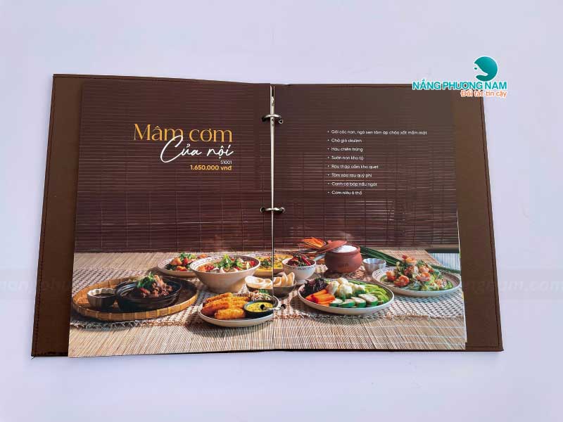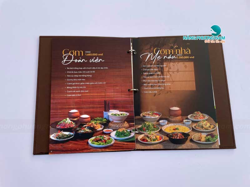 Mỗi phần trong thiết kế menu đều được Nắng Phương Nam chăm chút tỉ mỉ, từ hình ảnh món ăn sắc nét, sống động đến cách bố trí khoa học, hợp lý. Menu được thiết kế sao cho thực khách dễ dàng tìm kiếm và lựa chọn món ăn yêu thích.