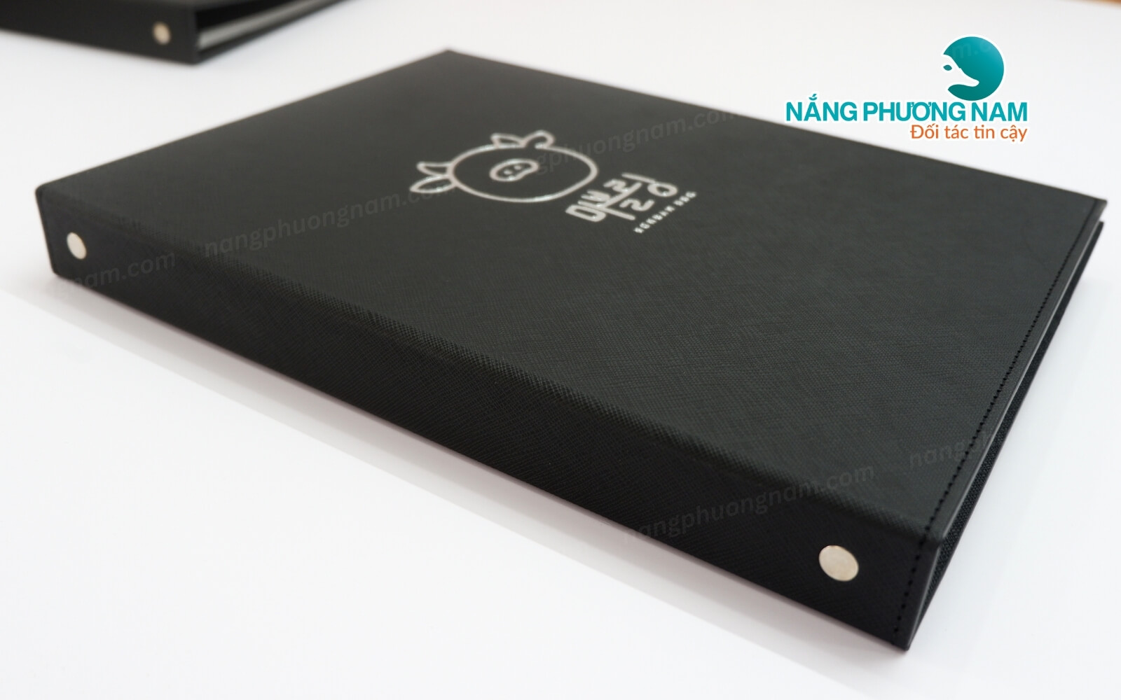 | Bìa da | Da simili, da PU, ép kim, dập chìm, In UV | Sang trọng, có thể thay đổi ruột dễ dàng, độ bền cao |