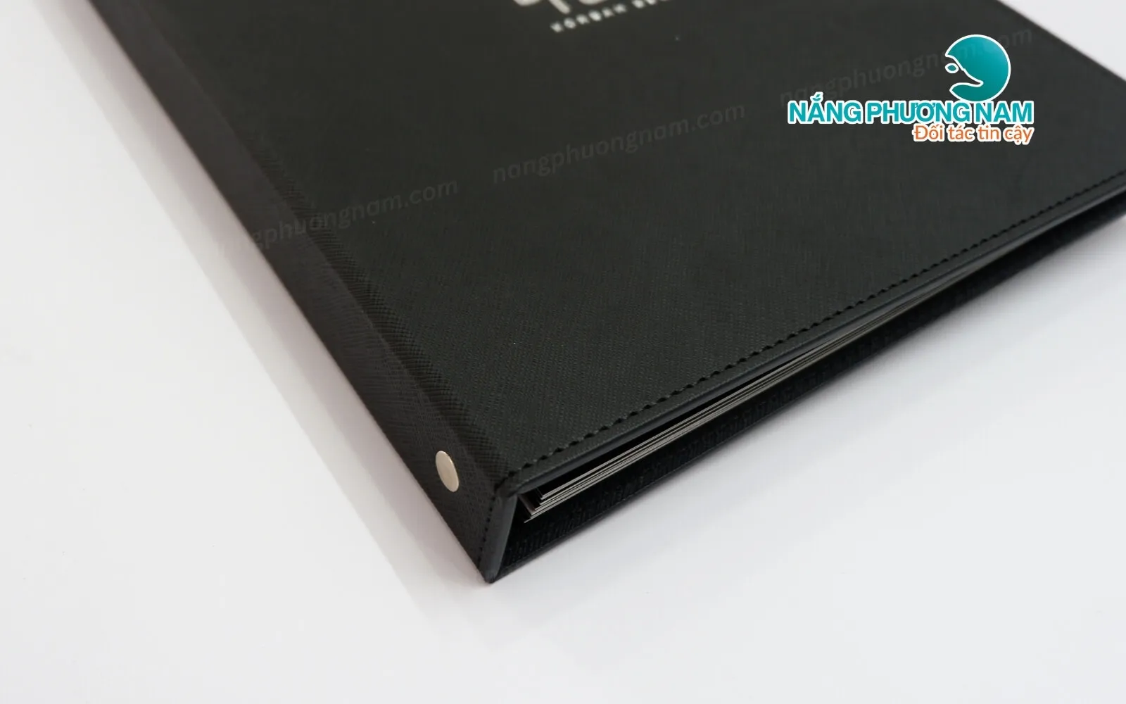 | Bìa da | Da simili, da PU, ép kim, dập chìm, In UV | Sang trọng, có thể thay đổi ruột dễ dàng, độ bền cao |