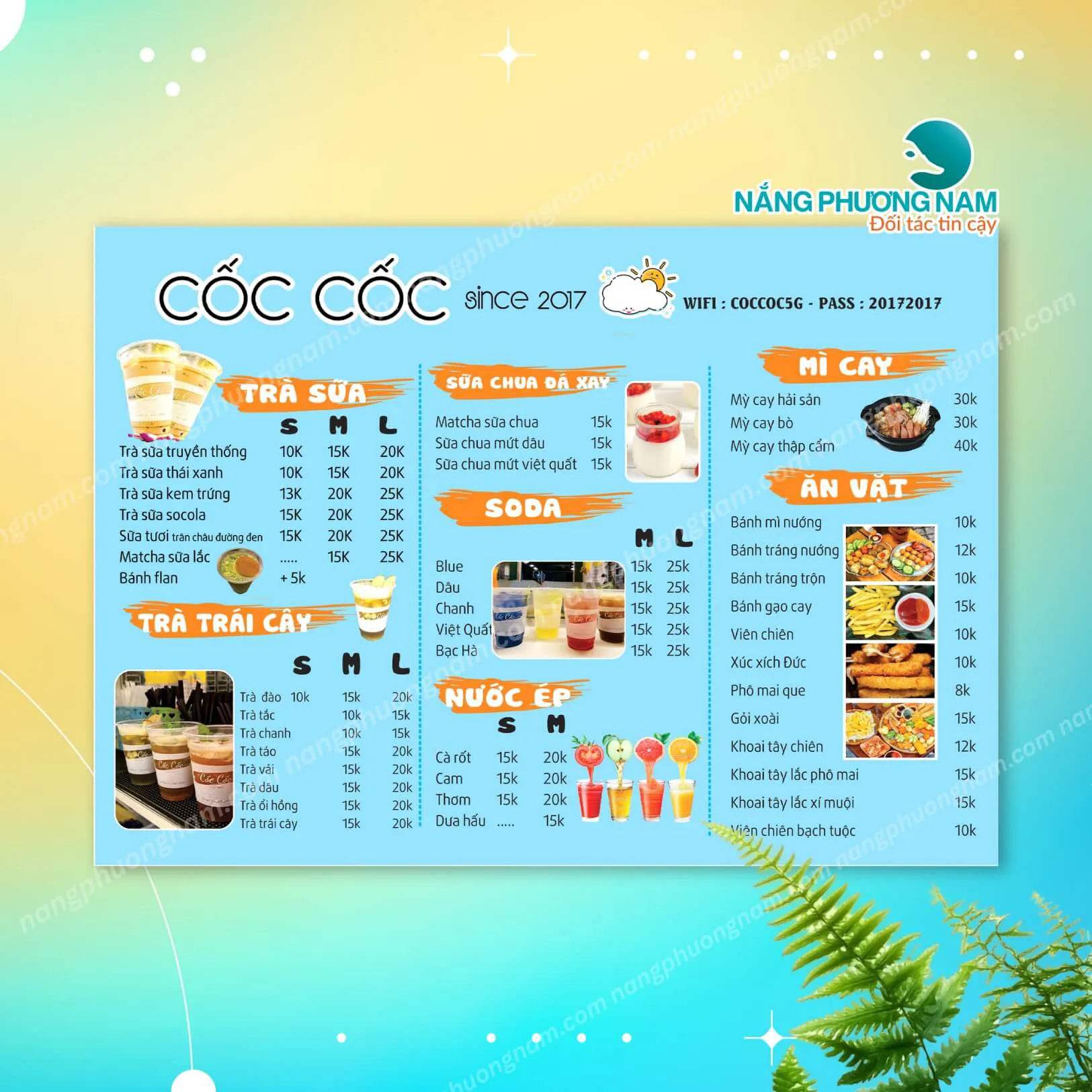 Mẫu Menu Mới Nhất Tại Nắng Phương Nam