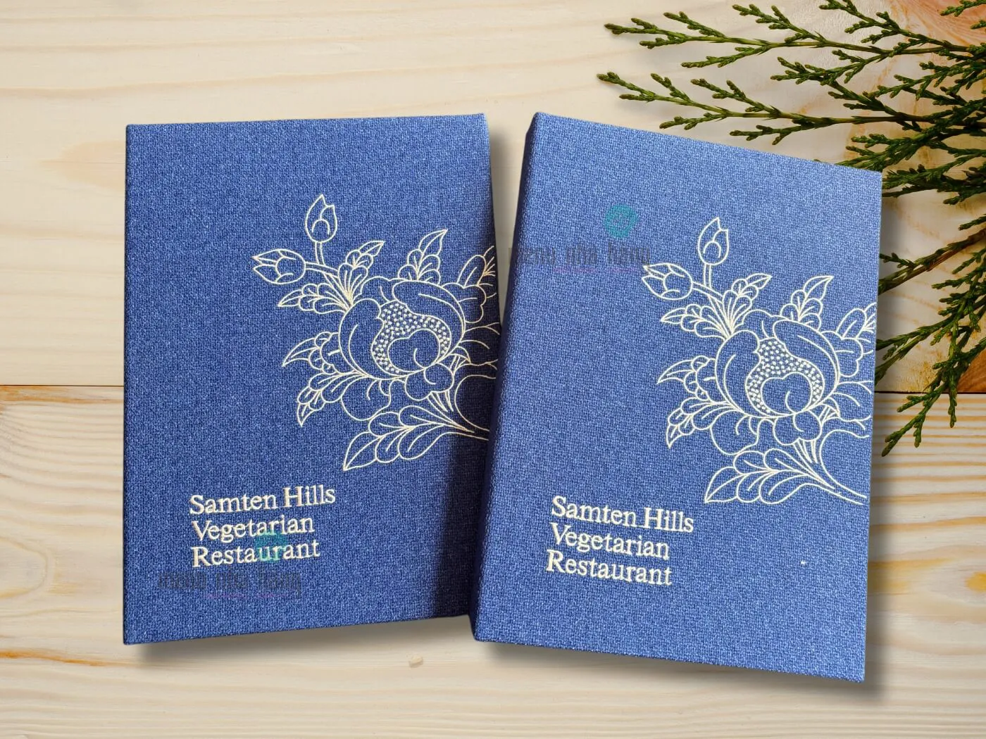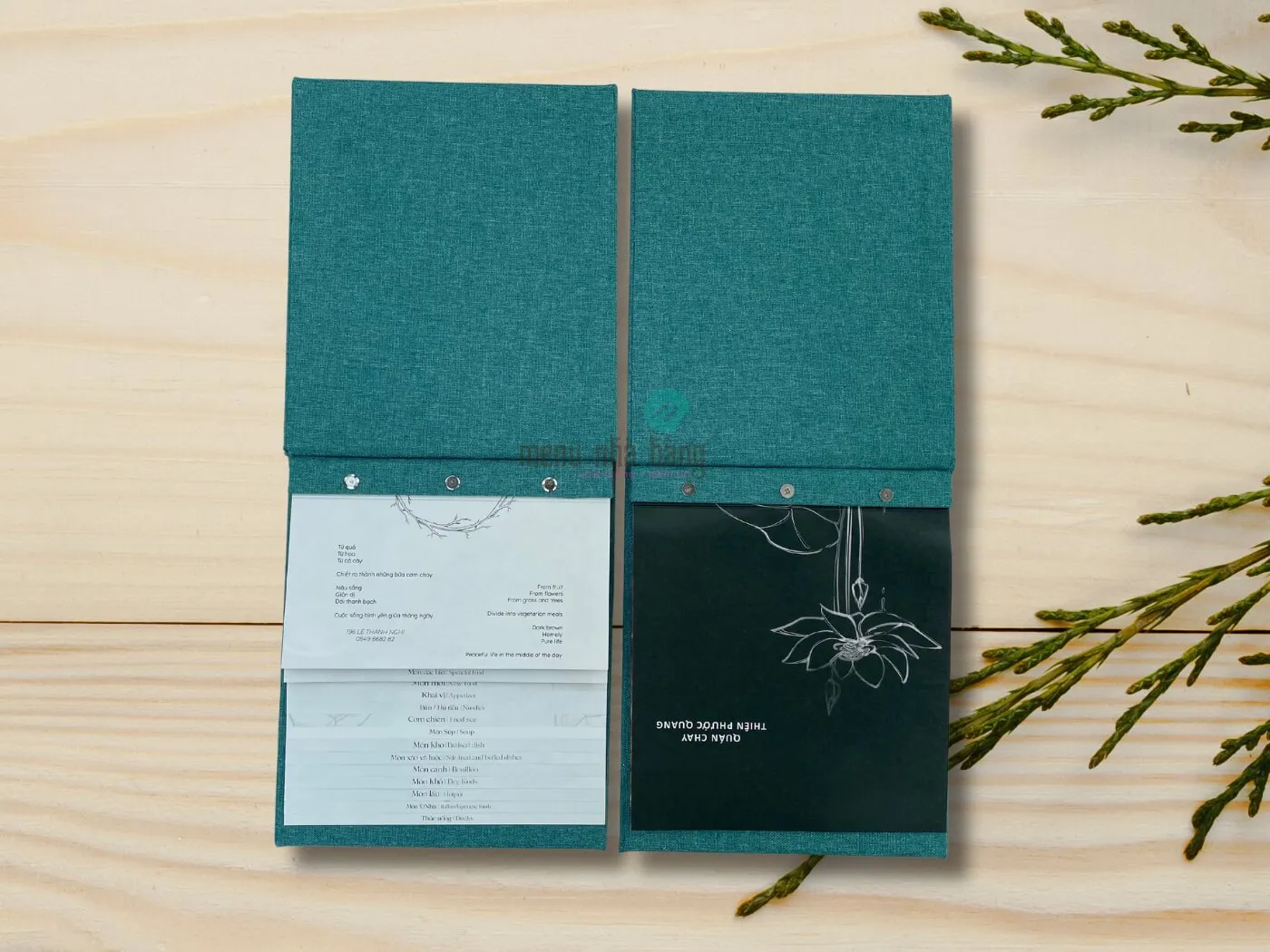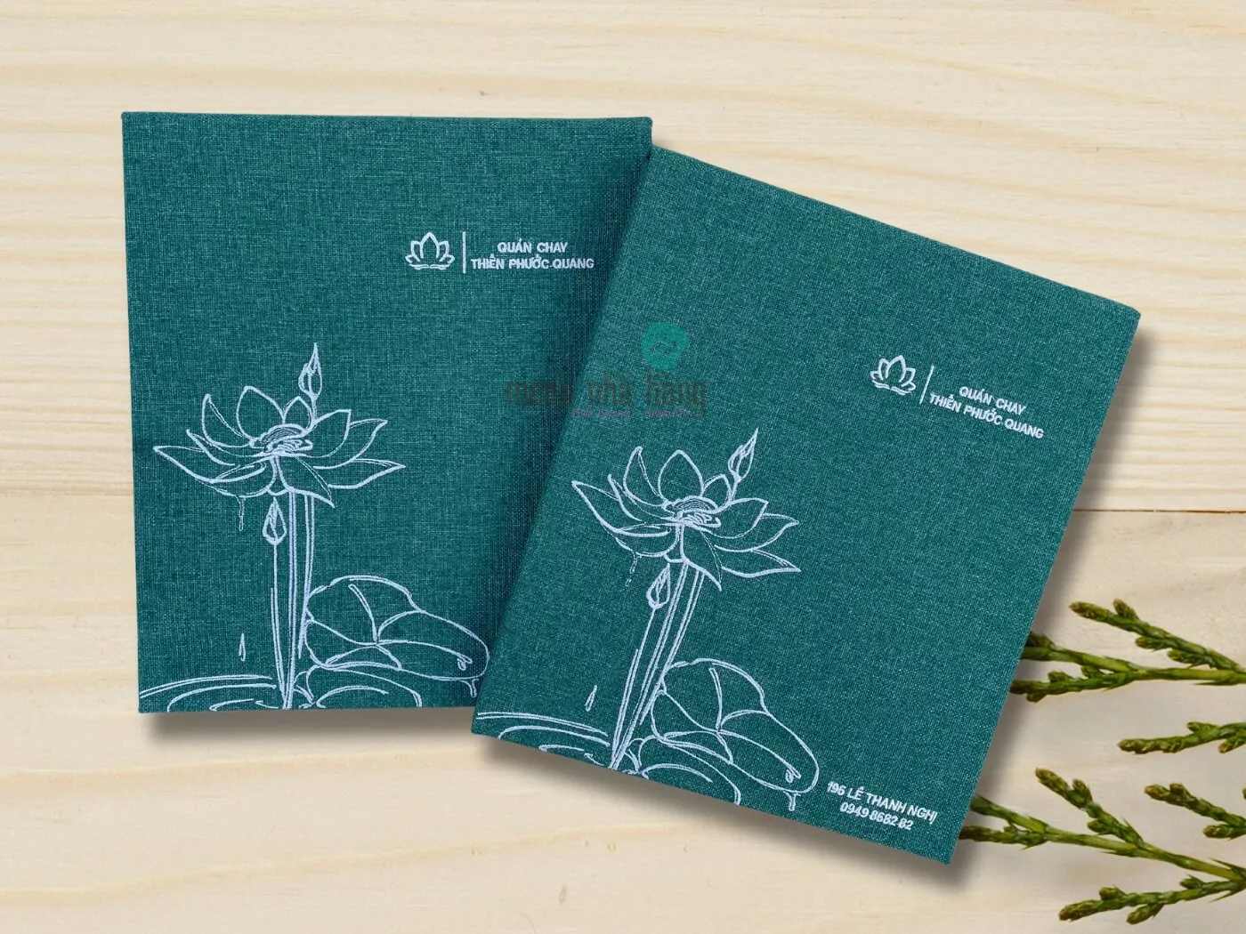 - Sử dụng lâu dài: Menu bìa vải thường kết hợp đóng cuốn chắc chắn, phù hợp với những quán chay hoạt động ổn định, ít thay đổi phong cách.